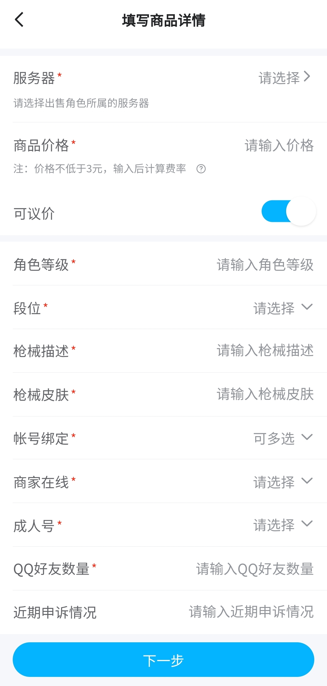 想要賬號被人買,首先要定價合理,再有商品簡介要吸引人,把賬號特色用簡短的話說清楚,如果不太知道怎么寫的朋友,平臺也貼心為你規(guī)劃了必填項,在賬號出售前,你只須按照要求填好空缺即可。