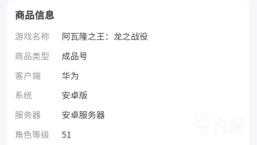 如果玩家們找到了自己心儀的游戲賬號之后,可以點擊進去對喜歡的賬號進行詳細的瀏覽,賣家會把自己賬號的細節(jié)填寫到商品信息欄中來方便玩家們進行細節(jié)瀏覽,使得玩家們挑選賬號的過程更加方便。