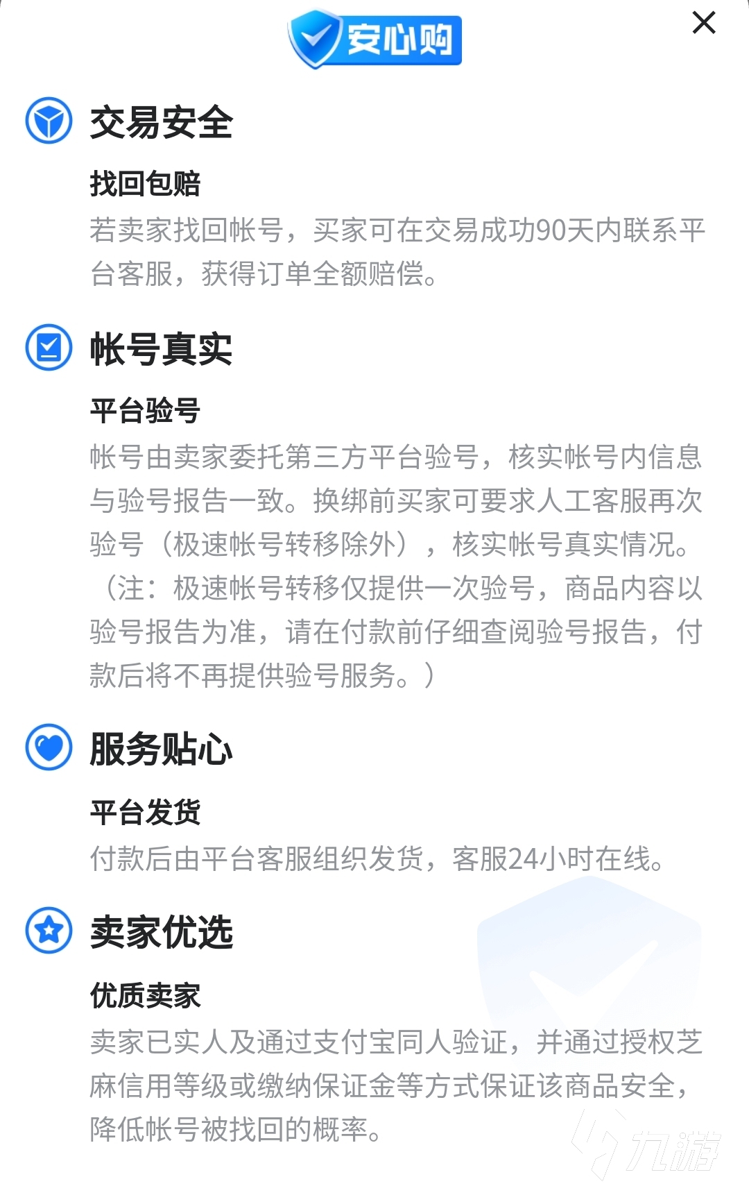 當(dāng)然,平臺(tái)方不只有上述一點(diǎn)服務(wù)。首先,賣家會(huì)經(jīng)過多方位的活體驗(yàn)證,并且?guī)缀醮蟛糠仲u家都授權(quán)了芝麻信用展示給買家們。如果你進(jìn)入app會(huì)發(fā)現(xiàn),很多商品上除了有平臺(tái)驗(yàn)號(hào)字樣,還有安心購(gòu)、找回包賠、保險(xiǎn)贈(zèng)送之類的標(biāo)識(shí),這些都是平臺(tái)提供的服務(wù)保障,只為讓買家們購(gòu)號(hào)無憂。