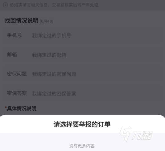很多賬號(hào)交易的風(fēng)險(xiǎn)其實(shí)往往會(huì)發(fā)生在交易完成之后,不過(guò)交易貓這邊設(shè)置了強(qiáng)大的舉報(bào)功能,大家出現(xiàn)找回問(wèn)題之后,只需點(diǎn)擊安全中心,然后點(diǎn)擊“我要舉報(bào)”-“舉報(bào)交易找回”即可進(jìn)入信息填寫(xiě)界面,界面中僅需寫(xiě)清楚一些情況,即可有專業(yè)客服為您受理,由于在平臺(tái)出號(hào)需要上傳實(shí)名信息,所以必要時(shí)客服還將提供賣(mài)家實(shí)名幫助您維權(quán)。