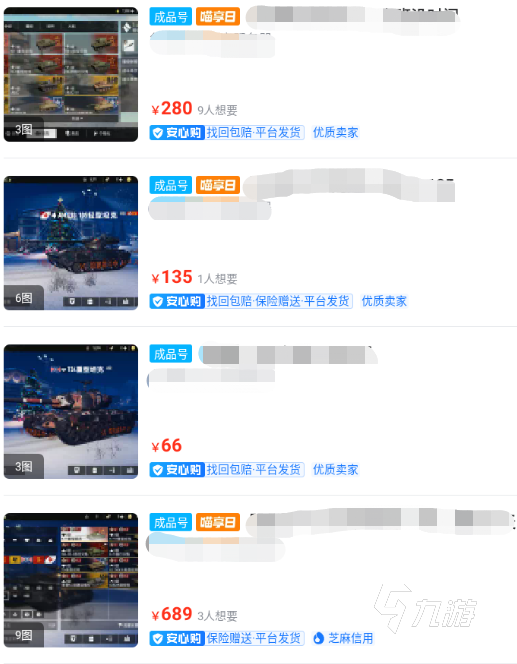 交易貓上面的活躍賣(mài)家數(shù)量是很多的,因此不論是何種價(jià)位的賬號(hào)平臺(tái)都是有大量?jī)?chǔ)備的,而且從上圖不難看出,這些賬號(hào)都是配備了大量高質(zhì)量坦克的,因此性價(jià)比也很高,再一個(gè)就是它們幾乎都會(huì)配備安心購(gòu)標(biāo)識(shí),有該標(biāo)識(shí)的商品不但會(huì)涵蓋免費(fèi)贈(zèng)送保險(xiǎn),部分還會(huì)提供“找回包賠”服務(wù),因此相當(dāng)于是一份錢(qián)同時(shí)買(mǎi)了賬號(hào)和安全保障兩種商品。