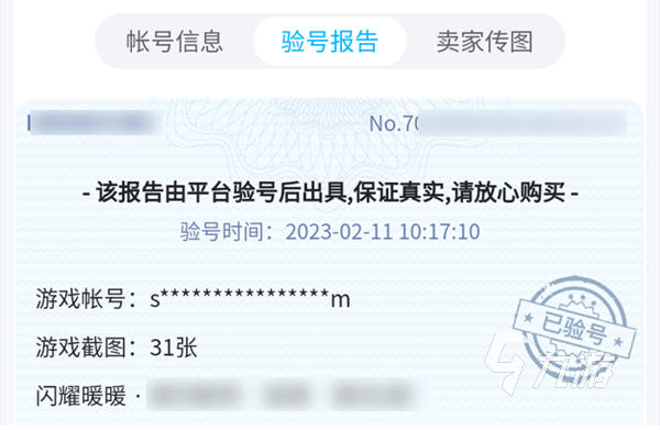在賣家上架賬號(hào)的時(shí)候就能夠勾選免費(fèi)的驗(yàn)號(hào)服務(wù),之后賬號(hào)以及內(nèi)容會(huì)經(jīng)過官方交易員的查驗(yàn),如果查驗(yàn)通過就會(huì)獲得一份驗(yàn)號(hào)報(bào)告并且順利上架。如果大家對(duì)賬號(hào)的真實(shí)性有存疑,不要忘了在挑選的時(shí)候注意看下是否帶有驗(yàn)號(hào)報(bào)告哦。