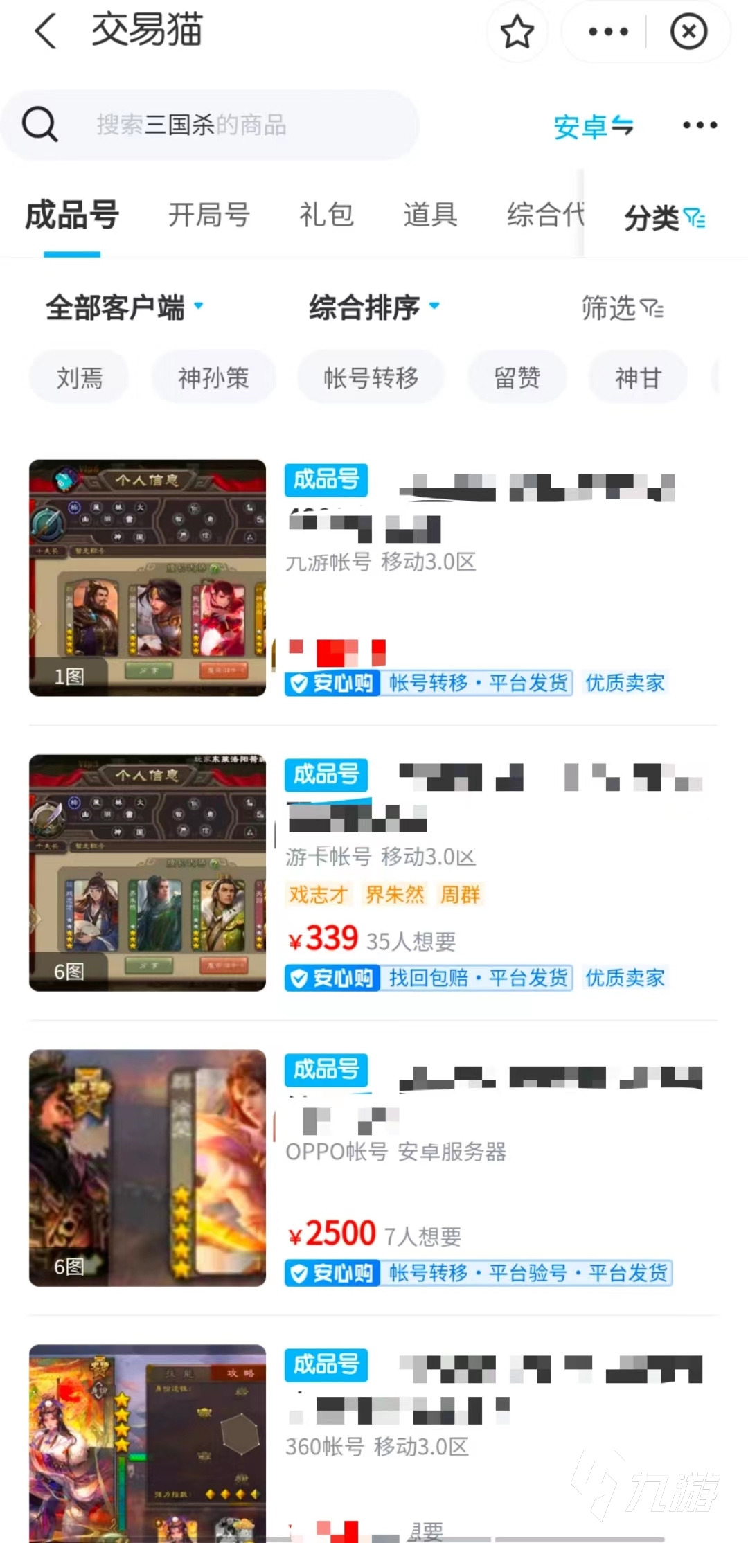 以上就是小編收集到三國(guó)殺老賬號(hào)去哪里賣(mài)最值錢(qián)的全部信息,選擇交易貓,就是選擇一個(gè)最好的交易方式和最高的價(jià)格,只要你的賬號(hào)足夠優(yōu)質(zhì),基本上都可以快速的完成交易,或者你可以在交易完成后再買(mǎi)一個(gè)新的賬號(hào),通過(guò)培養(yǎng)后進(jìn)行二次售賣(mài)。