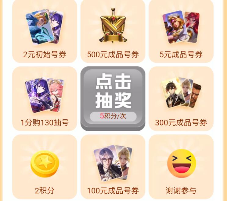 每日簽到可以獲取積分,這個積分大家可以將其當(dāng)成現(xiàn)金看待,因為在購買賬號時,積分可以直接折現(xiàn),當(dāng)然積分越多想買的賬號也就越便宜。此外,平臺經(jīng)常推出限時抽獎、活動、任務(wù)等,參與即可得到積分,甚至是不同額度的優(yōu)惠券。這個優(yōu)惠券的用法和積分無疑,在買號時自動生效,為用戶們進一步省錢。不得不說這個設(shè)定還是很不錯的,屬于是平臺讓利,給用戶購號的性價比大大提高。