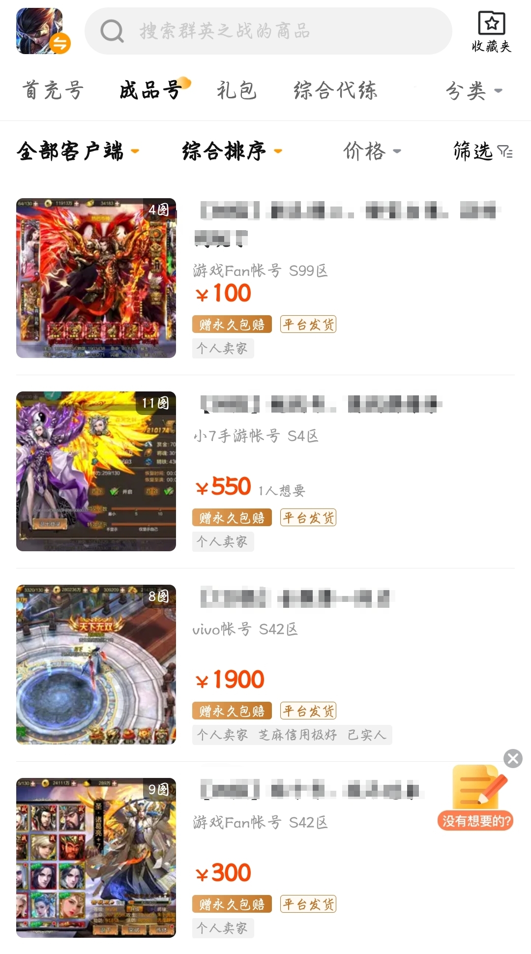 群英之戰(zhàn)賣號的相關(guān)分來分享就是這些,如果大家不知道用什么交易平臺比較好的話,不妨試試這個,還是很靠譜的,有了官方的保駕護航,大家基本上不會上當受騙了,后續(xù)如果想要繼續(xù)玩這個游戲的話,也是可以再買一個喜歡的賬號的,到時候記得按照自己能夠承擔的價格去進行搜索。