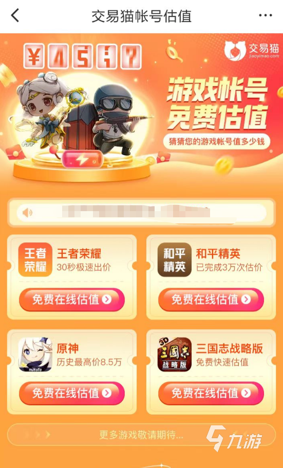 估價是每一個玩家,打算對一款游戲進(jìn)行脫坑或者來了解其賬號真實價值的重要方式。想要快速完成估價的話,對于玩家的游戲行情判斷能力也有著較高的要求。所以對于普通玩家來說,賬號估價是一個很難完成的任務(wù)。但小編建議大家去交易貓app中嘗試一下,目前該平臺開放了針對部分游戲的免費估價功能。