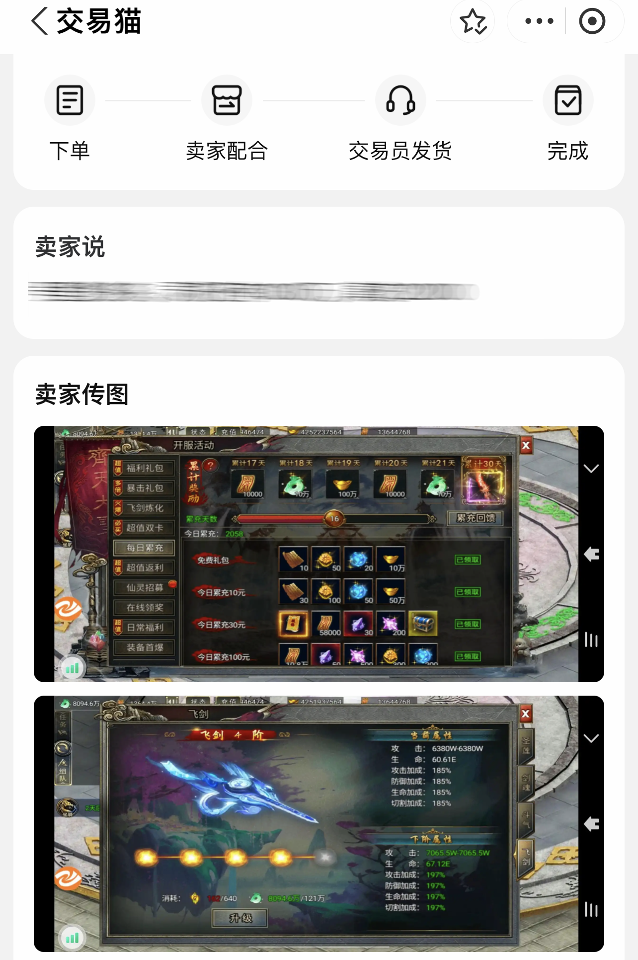 大家想賣(mài)號(hào)的話(huà)可以現(xiàn)在交易貓里找到對(duì)應(yīng)專(zhuān)區(qū),接著選好各種分類(lèi)以及信息后,即可快速上架商品。然后買(mǎi)家買(mǎi)號(hào)則更簡(jiǎn)單無(wú)腦了,僅需物色一個(gè)自己喜歡的賬號(hào),接著便可下單。當(dāng)你完成交易后,就能快速上號(hào)查看是否符合你的需求。接著確認(rèn)無(wú)誤后,便可完成交易。