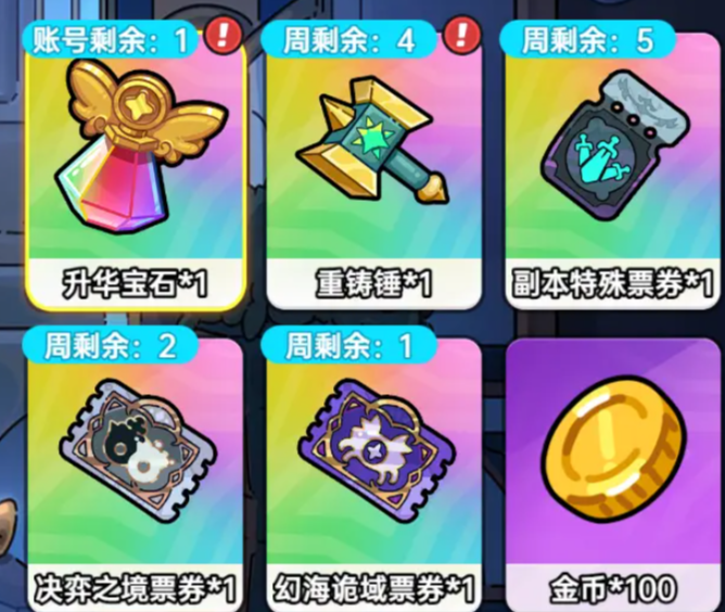 每日獎(jiǎng)勵(lì)會(huì)根據(jù)挑戰(zhàn)不同難度的冥王等到不同階級(jí)的寶箱,使用寶箱能隨機(jī)獲得不同數(shù)量的冥界之息,5階以上的寶箱還能有機(jī)會(huì)開(kāi)出來(lái)限定坐騎“冥王夜影·淵”,冥界之息可以用來(lái)在商人處兌換升華寶石、重鑄錘、幻海詭域票券、金幣等不同獎(jiǎng)勵(lì)。