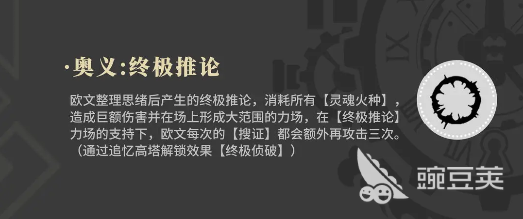 歐文的奧義技能能夠消耗所有靈魂火種,對(duì)敵人造成傷害并展開(kāi)大范圍立場(chǎng),在此立場(chǎng)內(nèi),他的每次普攻都將獲得額外三次攻擊的強(qiáng)化效果。該奧義還可通過(guò)追憶高塔進(jìn)一步解鎖終極偵破效果,潛力巨大。由于他出色的技能機(jī)制,歐文在過(guò)往測(cè)試中一直被廣大用戶認(rèn)定為T(mén)1級(jí)角色,強(qiáng)度備受認(rèn)可,無(wú)論是單人作戰(zhàn)還是團(tuán)隊(duì)協(xié)作都能扮演重要角色。此外,他的多個(gè)技能都能與裝備詞條產(chǎn)生良好聯(lián)動(dòng),這賦予了其配裝極高的靈活性及巨大的輸出潛力。