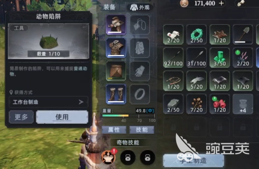 荒原曙光中的捉寵方式大體能分為三種,其一就是用陷阱捕捉,在角色八級時點出陷阱后就能制作,使用時各位可在地圖上布置陷阱,等有動物踩中陷阱后,即可將它們抓回家園成為自己的寵物。通常來說,鳥類、兔子等小動物只要踩上陷阱就能立刻捕捉,而大一點的動物只有在殘血時踩陷阱才有效,所以各位最好先攻擊它們,然后引它們到陷阱處來進行捕捉。至于再大一些的 生物,則完全無法用陷阱來困住它們。