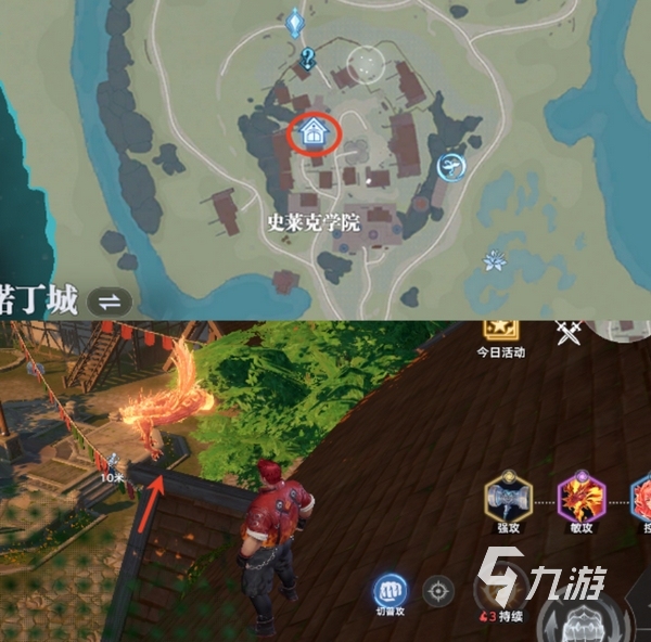 第四個碎片隱藏在史萊克學院的辦公室區(qū)域,碎片不在室內(nèi),而是位于辦公室建筑外部的屋頂上。玩家可借助周圍的高臺或飛行武魂直接上屋頂,靠近火龍標記即可完成收集。