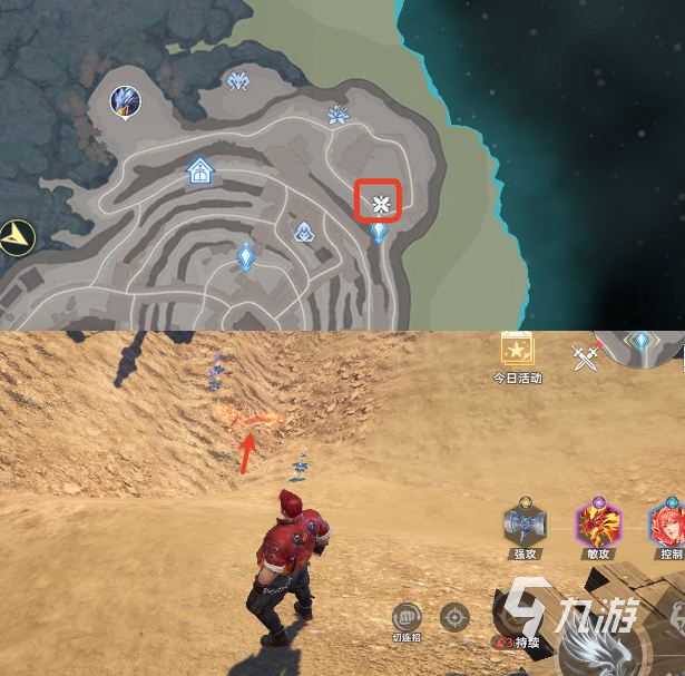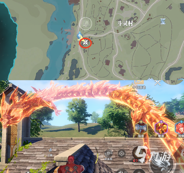 第五處回憶碎片是在斗靈村附近,先傳送點(diǎn),然后就可以看到在房頂?shù)幕瘕垼浅o@眼,還是很好找的。