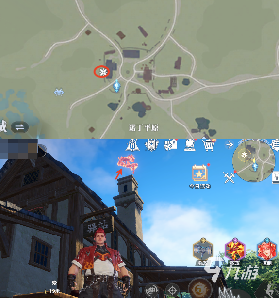 第三處是在諾丁平原左邊,在諾金哨崗傳送點(diǎn)的上面一點(diǎn),可以看到一個(gè)驛站,驛站旁邊類似煙囪的頂部就有火龍,可以找到這個(gè)回憶碎片。