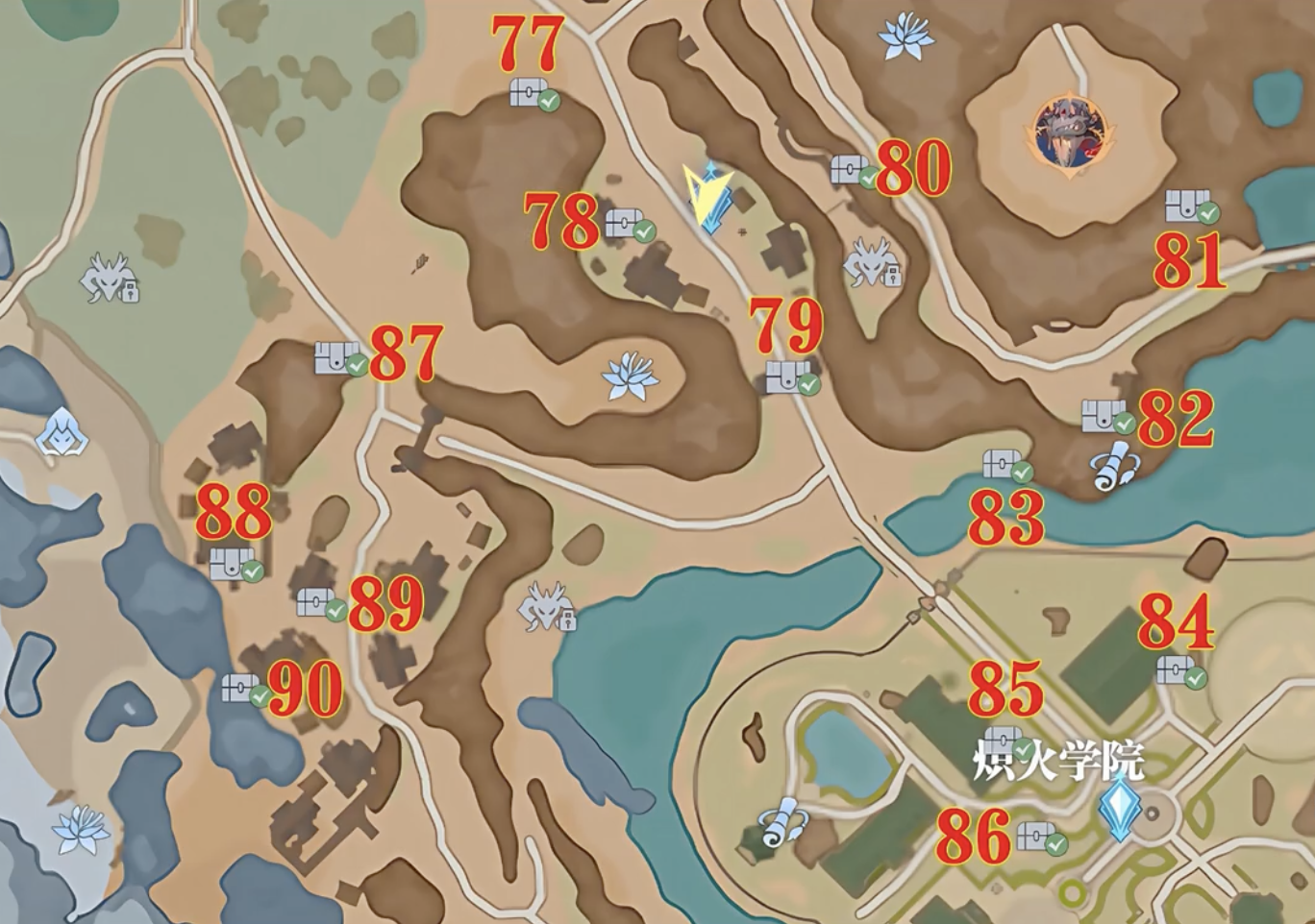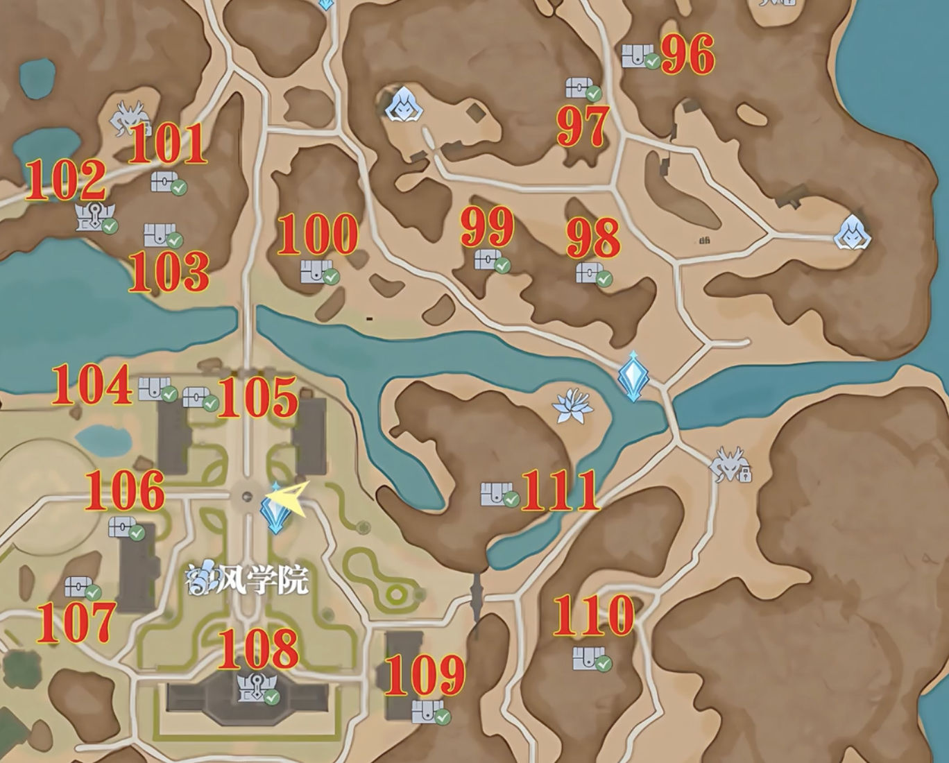 最后就是神風(fēng)學(xué)院附近,基本上沿著每條路都有寶箱分布,寶箱數(shù)量比較多。