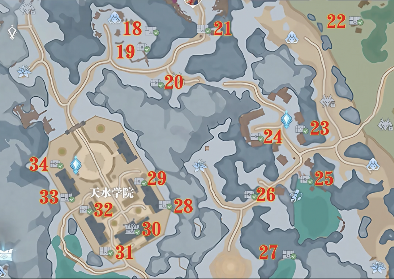 在天水學(xué)院附近的寶箱比較多,總共15個寶箱。