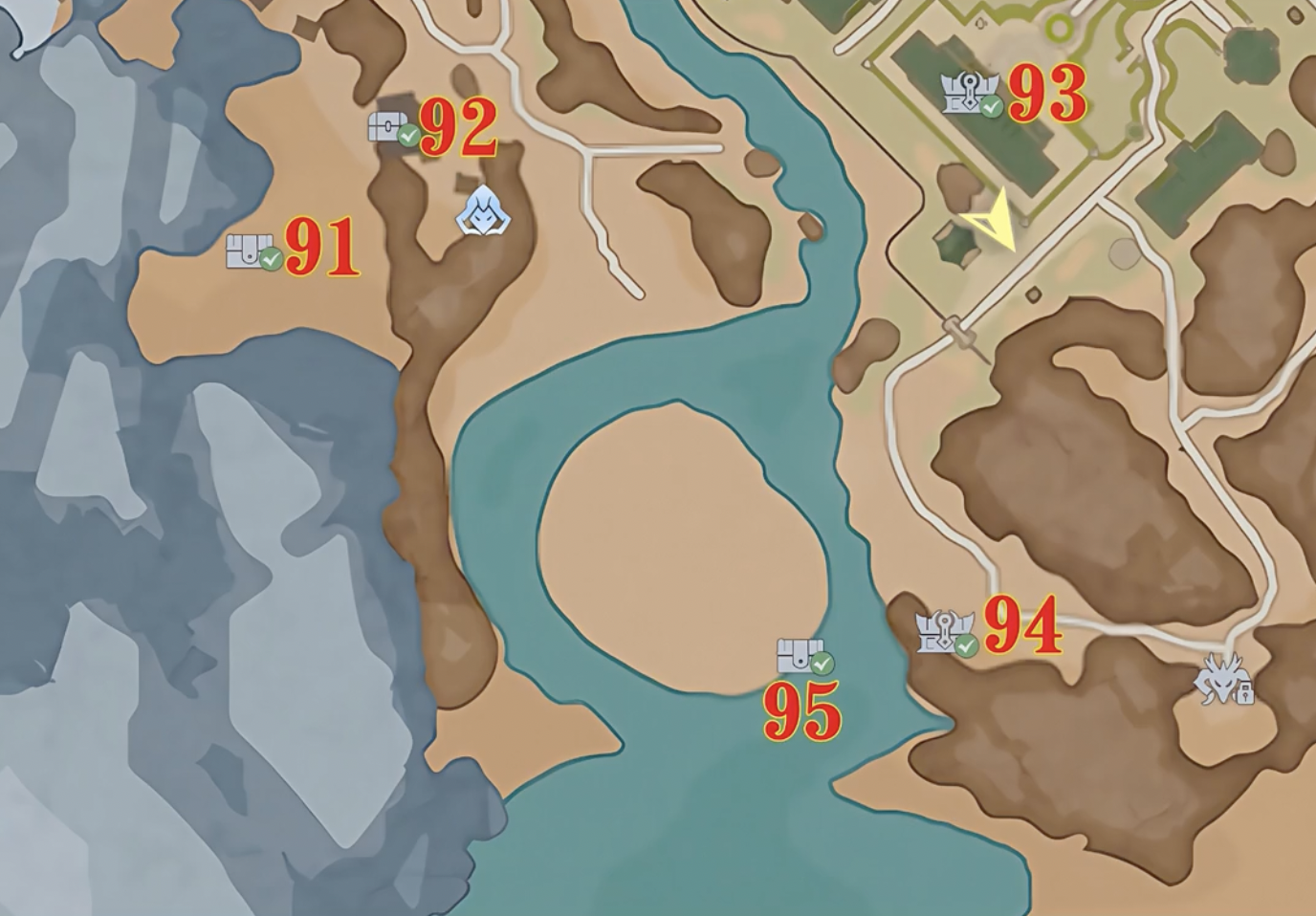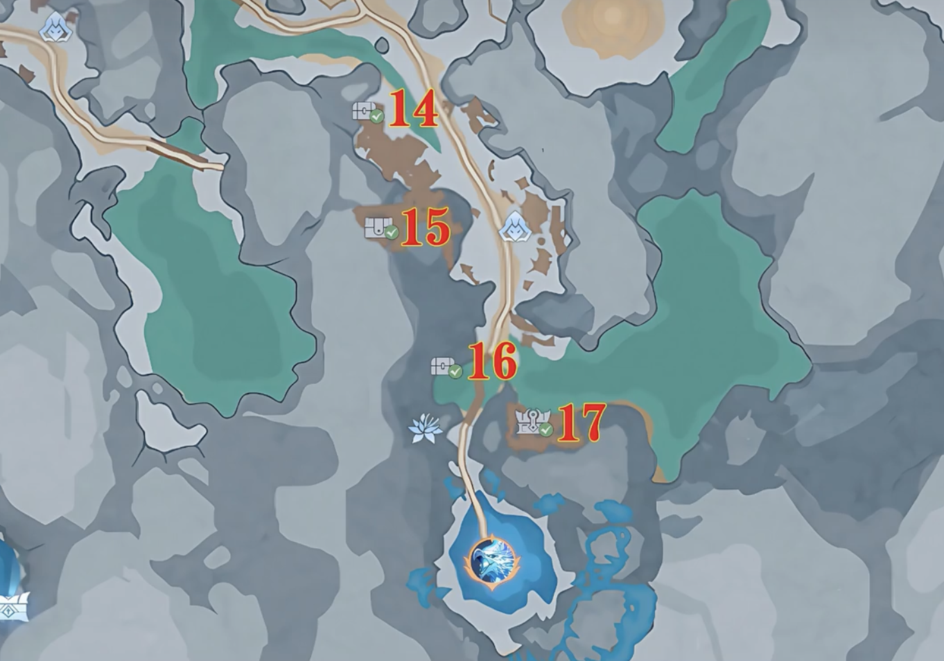 天水學(xué)院往下走,通往堅冰幻霜鷹的路上,有四個寶箱。