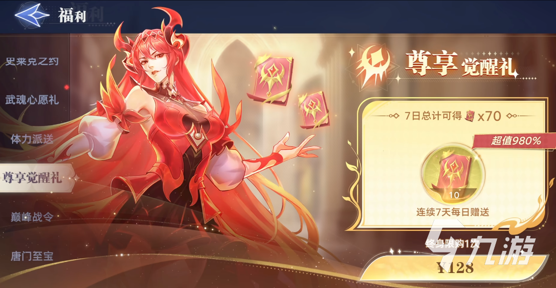 游戲中還有比較重要的氪點(diǎn),就是價(jià)值128元的尊享覺醒禮,這個(gè)禮券是終身制的,每日上線能領(lǐng)取到10張的覺醒券,可以連續(xù)領(lǐng)取7天。