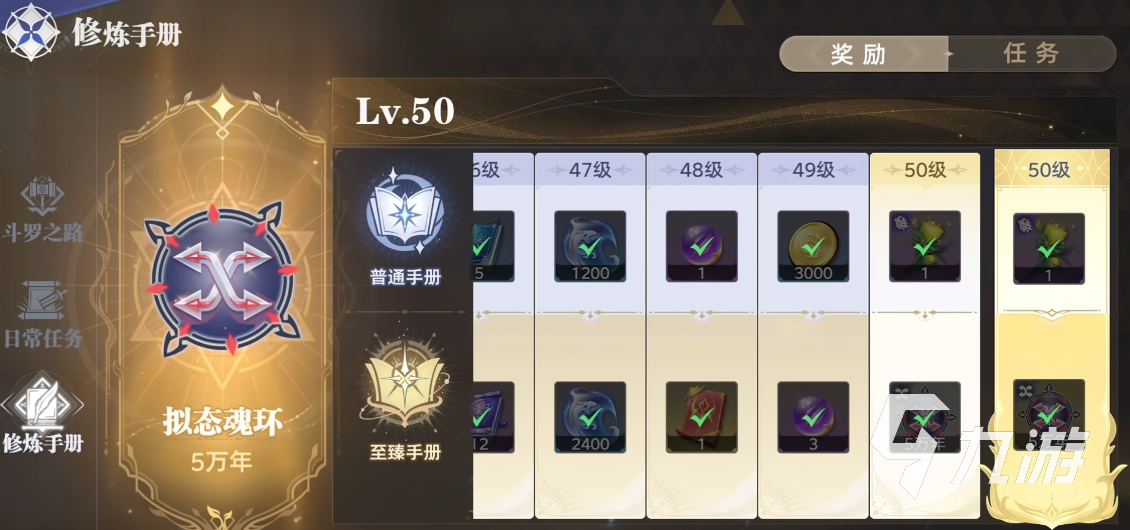 游戲中的修煉手冊(cè)也是很重要的氪金點(diǎn),這個(gè)氪金項(xiàng)目?jī)r(jià)值68元。修煉手冊(cè)相當(dāng)于等級(jí)內(nèi)容,達(dá)成領(lǐng)取的等級(jí)條件就能獲得相關(guān)的道具獎(jiǎng)勵(lì),這些獎(jiǎng)勵(lì)對(duì)于游戲初期的玩家來說也是很重要的資源道具。在修煉手冊(cè)的獎(jiǎng)勵(lì)中,當(dāng)玩家等級(jí)達(dá)到50級(jí),能獲得5萬年的魂環(huán)。