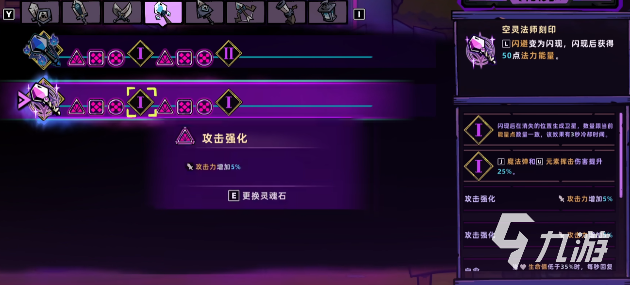 而紅空靈玩法的關(guān)鍵在于附魔選擇,其中最核心的一條附魔效果是:消耗能量點釋放2個衛(wèi)星追蹤敵人并進行持續(xù)8秒射擊。這條附魔能顯著提升衛(wèi)星數(shù)量與持續(xù)時間,是紅空靈傷害機制的基礎(chǔ)構(gòu)件。其他兩條推薦附魔為:提高能量豆上限并讓衛(wèi)星攻擊視為魔法彈、改為射線攻擊并提升25%傷害,雖然重要性略低,但配合主附魔仍能提升輸出效率。