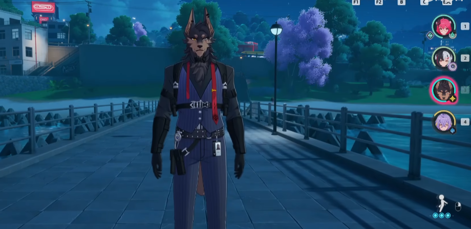 該角色的形象是其中很有特色的一個(gè),帥氣的人身,但是卻是狼頭,表情很酷,眼神堅(jiān)毅,福瑞控想必非常喜歡。該角色可作為主C使用,近距離輸出是他主要的作戰(zhàn)方式。正常閃避和別的角色沒有太大的差別,長按閃避會(huì)讓角色化身一團(tuán)黑水,可通過黑水的形態(tài)在地面上移動(dòng)前進(jìn),該形態(tài)之下能較為請(qǐng)送的跨越很多障礙物,但是閃避形態(tài)下無法過河。