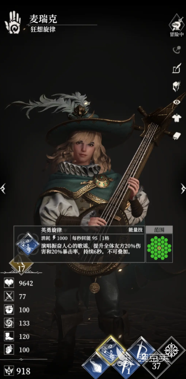 狂想旋律的“共鳴”能在身上每有1個增益技的情況下,讓傷害提升15%最多提升60%,他的“咒罵”會在戰(zhàn)斗中首次生命低于50%時觸發(fā),此時會咒罵周圍2格的敵人們,使得他們陷入到沉默之中,在10秒內(nèi)無法釋放能量技,并且每秒失去100點(diǎn)能量,他的“強(qiáng)音”會對目標(biāo)造成敏捷58%加攻擊58%的物理輸出,他的能量技可以讓所有隊(duì)友的傷害以及暴擊率,在6秒內(nèi)提升20%。