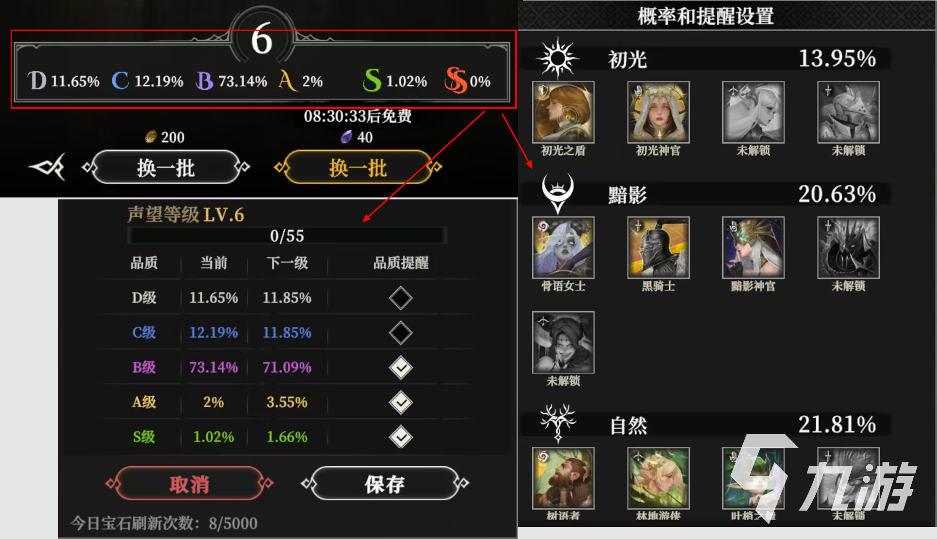 接著再為大家詳細介紹一下公會的功能和作用,在公會可召喚新英雄,公會等級影響可招募英雄的數(shù)量上限,但不影響英雄品質(zhì);若是提升聲望可提高高品質(zhì)英雄(如SS級)的召喚概率,但聲望只能通過刷新提升。