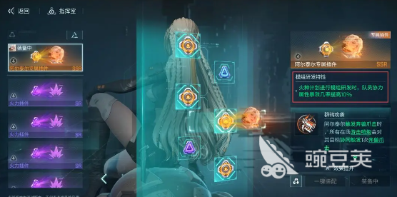 插件的基礎(chǔ)規(guī)則是比較重要的,每一個(gè)隊(duì)友最多就可以安裝6個(gè)插件,并且還會有明確的部位標(biāo)識。1號插件就應(yīng)該放在1號位置,不可以亂塞。這6個(gè)插件位置里面有4個(gè)和隊(duì)友技能是直接掛鉤的,而剩下的兩個(gè)就屬于通用基礎(chǔ)提升。玩家想要強(qiáng)化技能還是想要去補(bǔ)充基礎(chǔ)屬性,只需要看位置去挑選即可。插件主要分成兩類,一種就是隊(duì)員專屬插件,只有特定的隊(duì)員才可以使用。例如阿爾泰爾的專屬插件,其他的隊(duì)員根本就不能夠使用,每一個(gè)最多只能夠裝4個(gè)。