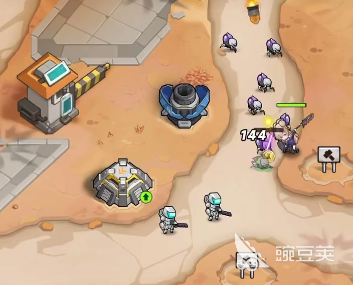等到出現(xiàn)HELP的時(shí)候我們的角色就需要上前進(jìn)行幫助,這個(gè)階段出現(xiàn)的敵人并不多,角色便可以輕松應(yīng)對(duì)。在解決完第一波之后我們需要建造一個(gè)機(jī)槍塔。并且讓角色退到機(jī)槍塔的范圍,因?yàn)榻酉聛?lái)第二波的敵人數(shù)量將會(huì)增加一些,同時(shí)這些敵人的血量和防御都不低,咱們需要機(jī)槍塔來(lái)協(xié)助攻擊。
