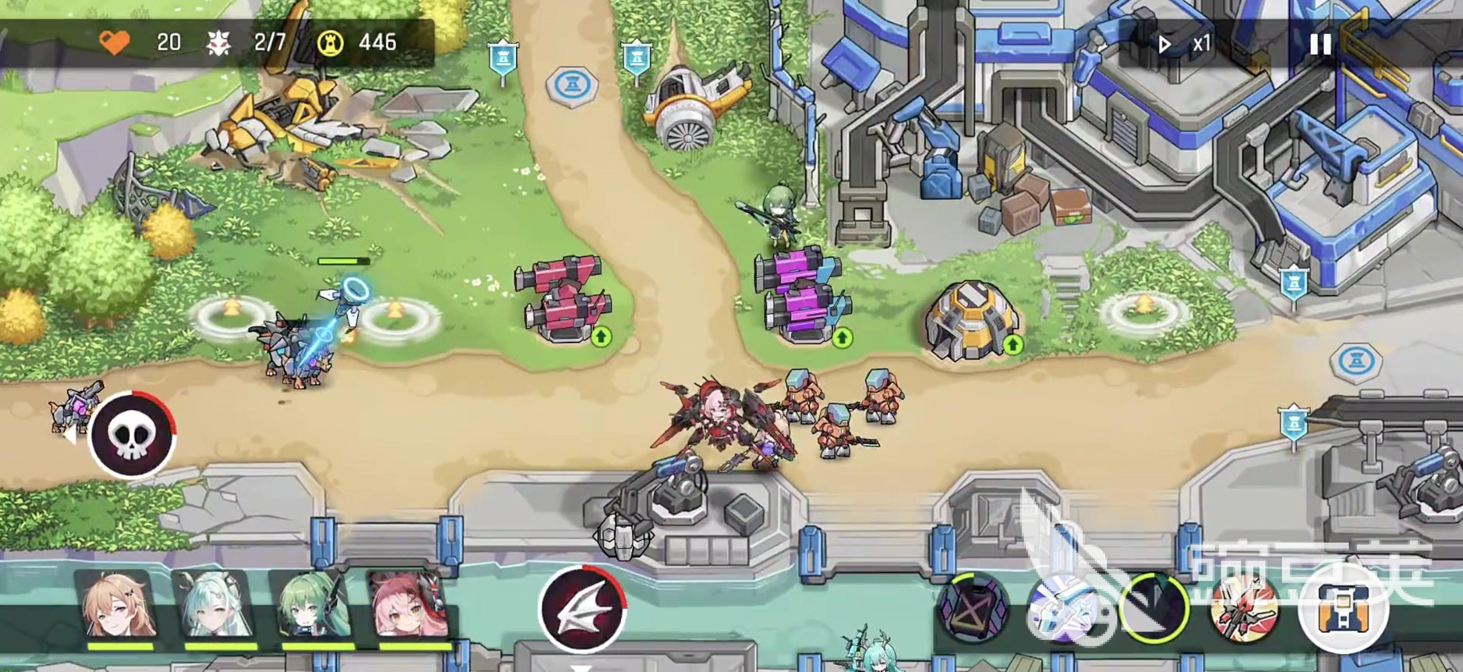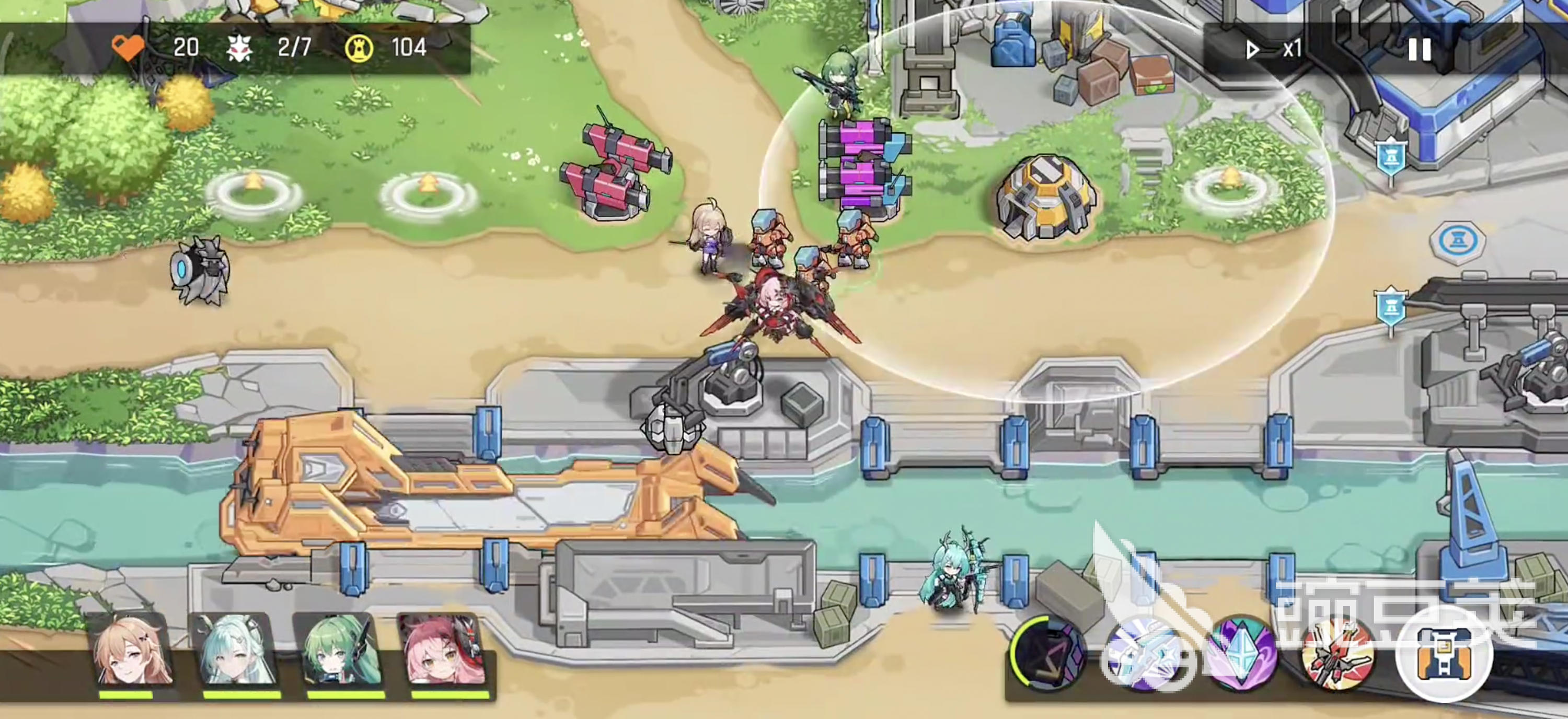 一進(jìn)入關(guān)卡,最明顯的就是地圖中央的河流。地面英雄想要過河必須等船,而船并不是隨叫隨到,而是按照固定時間經(jīng)過。這個機制常常導(dǎo)致支援速度跟不上,一旦敵人集中爆發(fā),防線就可能瞬間被沖垮。應(yīng)對的最好辦法,就是帶上飛行英雄,他們完全不受河流影響,還能針對飛行怪物進(jìn)行攔截。