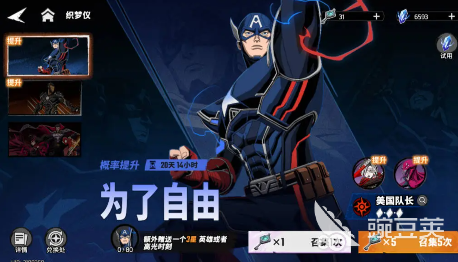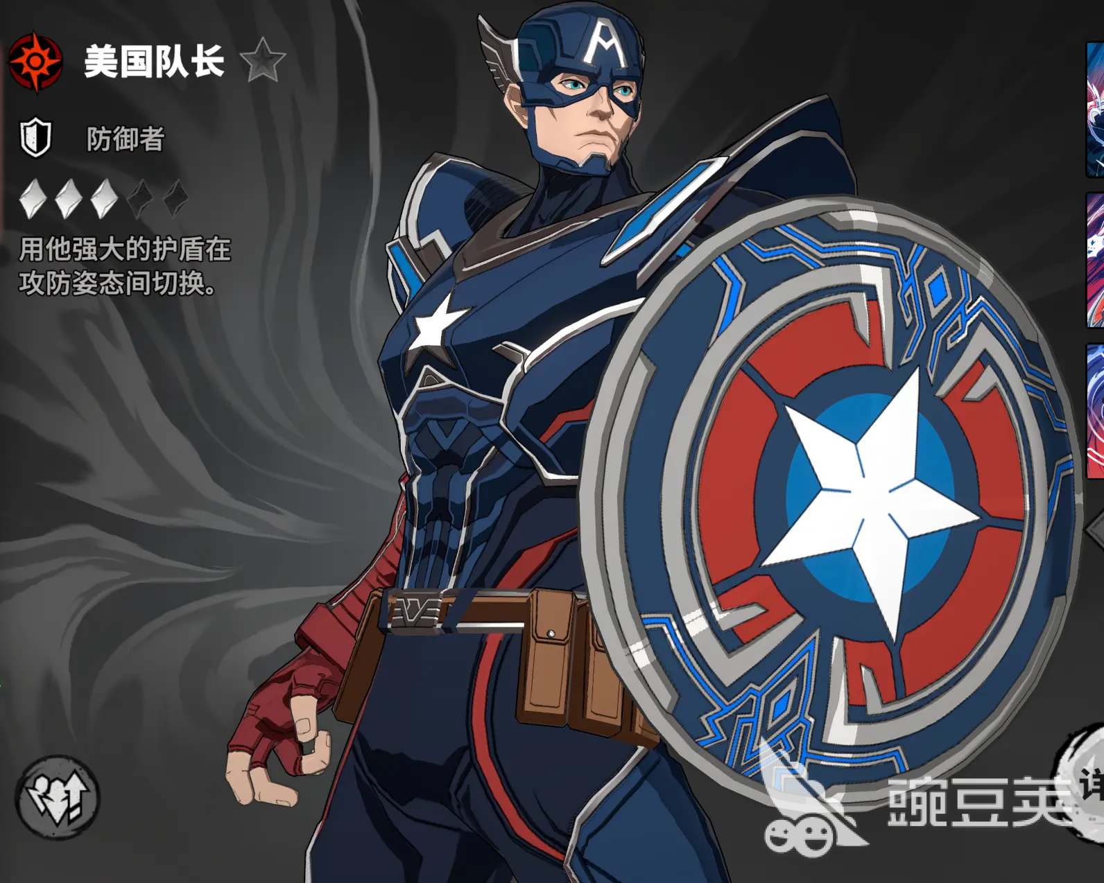 首先推薦美國隊長,這是非常穩(wěn)定前排角色,攻防兼?zhèn)?,可在攻擊形態(tài)和防御形態(tài)之間自由轉換,能夠適應多種不同陣容,被動影響下,開局自動進入攻擊形態(tài),釋放大招可切換為防御,這個狀態(tài)下提升互動能力,盾牌還可悲作為投擲武器使用;這個角色就很適合新手培養(yǎng),擔任輸出和保護都是可以的,初期隊伍穩(wěn)定的核心所在。