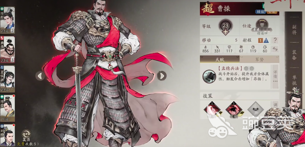 而在戰(zhàn)法和屬性的使用上,曹操的戰(zhàn)法建議選擇長者之風(fēng)和堅韌,不僅能夠?qū)崿F(xiàn)高效回血和自身的坦度增長,并且在群體戰(zhàn)斗當(dāng)中可以加長續(xù)航時間,屬性方面主要堆砌生命值和防御值。
