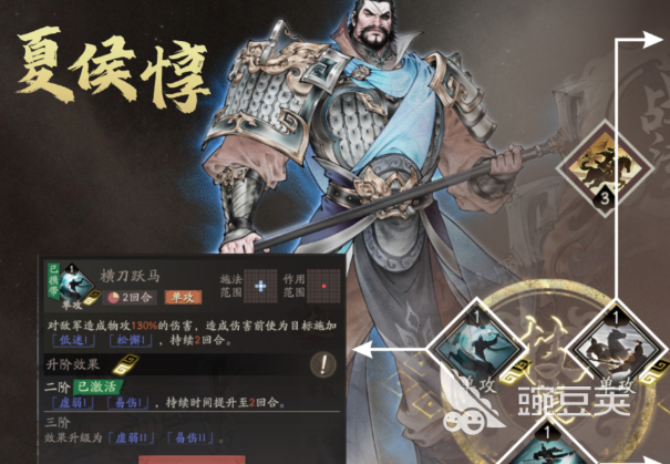 除此之外還需要為夏侯惇選擇合適的技能。如果你處于前期的話,小編建議大家?guī)б粋€橫刀躍馬,一個突進,這樣的話配合被動技能雪恨,基本上能夠覆蓋大部分的戰(zhàn)局。到了后期,小編比較推薦的技能是忠勇義烈和力戰(zhàn),其中忠勇義烈是一個收割型的技能,如果說你的場上還有其他輸出的話,那么該技能可以配合主c完成收割。而力戰(zhàn)可以讓自己的攻擊值和防御值得到進一步的提升,是一個非常好用的輔助技能。