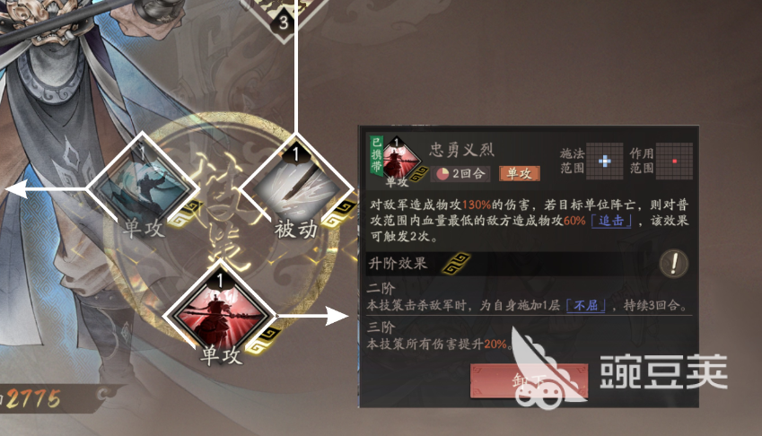 夏侯惇這個角色的核心戰(zhàn)斗機制是他的反擊機制,因此小編建議大家在轉(zhuǎn)職的時候選擇戰(zhàn)車。該職業(yè)的缺點是需要犧牲一點移動力,但優(yōu)點就是這一點移動力能夠換來更大范圍的攻擊,因此總的來說還是比較劃算的。在切換至戰(zhàn)車之后,攻擊范圍將會覆蓋到8名敵人左右,并且傷害和吸血的效率都會得到提升。其次就是戰(zhàn)車職業(yè)可附帶雪恨天賦,該天賦可使夏侯惇的兵力恢復(fù)35%,進一步的提升持續(xù)作戰(zhàn)的能力,對于隊伍的整體續(xù)航能力也有著不少提升。