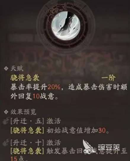這里可以額外增加的20%暴擊率,也是相當(dāng)于戰(zhàn)意上面的增益效果了,如果大家結(jié)合了第三個(gè)技能的話,這里大家還可以選擇一個(gè)奪射紅心,其實(shí)很多喜歡玩射手路線的玩家都知道這個(gè)技能,這個(gè)技能可以讓夏侯淵在保證了他自己可以帶來(lái)足夠的單體傷害時(shí),還可以帶一些大范圍的群體傷害,并且這類群體傷害是可以達(dá)成合擊效果的,所以也是為夏侯淵補(bǔ)了一些另外類型的傷害技能,如果夏侯淵后期要進(jìn)行培養(yǎng)的話,這里要注意他一定需要的就是暴擊上面的加成,也就是運(yùn)勢(shì)跟會(huì)心的提升效果。