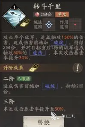 就算大家將夏侯淵兩條路線都打通的話,前期也只有兩個(gè)技能效果可以使用,所以這里基本大家不可能把他的兩個(gè)技能槽里面都放被動(dòng),所以建議大家選擇一個(gè)清兵線來(lái)進(jìn)行開(kāi)局就可以了,另外,大家在走騎兵線里面選擇了虎步無(wú)前的話,還可以搭配另外一個(gè)技能,就是轉(zhuǎn)斗千里,這個(gè)技能的話,可以讓夏侯淵憑借自身的高移動(dòng)特性帶來(lái)足夠的追擊,而且在追擊位置上面,大家要找到一個(gè)比較合適的位置才可以。
