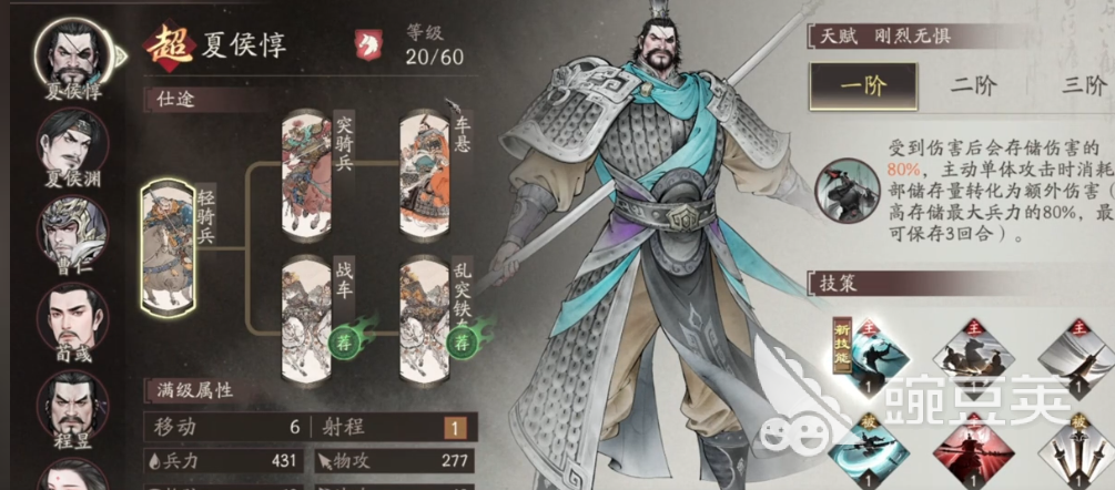 郭嘉:2階核心主要是提升普通攻擊,還有戰(zhàn)法,在這一個游戲中,射程優(yōu)勢是比較顯著的,因此優(yōu)先度比較高,三階雖然可以延長控制的效果,但二階已經(jīng)足夠使用。徐晃:2階可以有效增加15%的暴擊率,因此提升還是比較明顯的。3階的攻心轉(zhuǎn)護盾效果比例極低,不需要去升級。夏侯惇:2階殘血時大概會有32%的兵力回復,沒有奶媽的時候就可以使用。3階回復效果略增,但整體的優(yōu)先級并不高。于禁:2階協(xié)助友軍觸發(fā)奮戰(zhàn)會擁有一個無視75%防御,實際上只不過是多了100多傷害,所以也沒有必要選擇去優(yōu)先升級。荀攸:2階每回合僅多3%法攻,提升最小,1階即可用。
