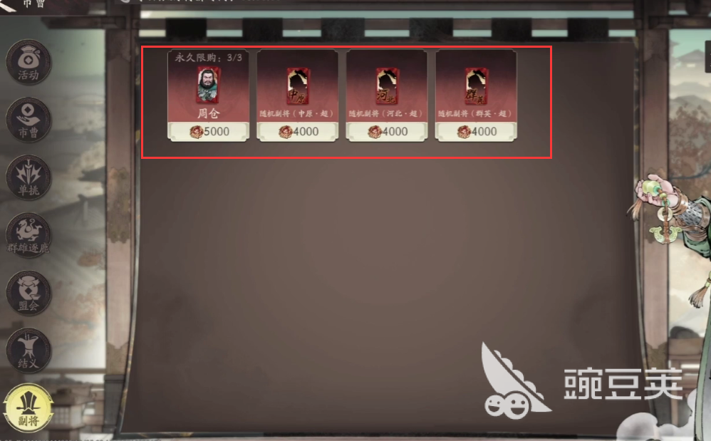 副將商店則是代幣兌換型商店,如若玩家背包中持有“賢名”,則可直接兌換副將單位,例如可以直接兌換周倉、韓遂等等角色。