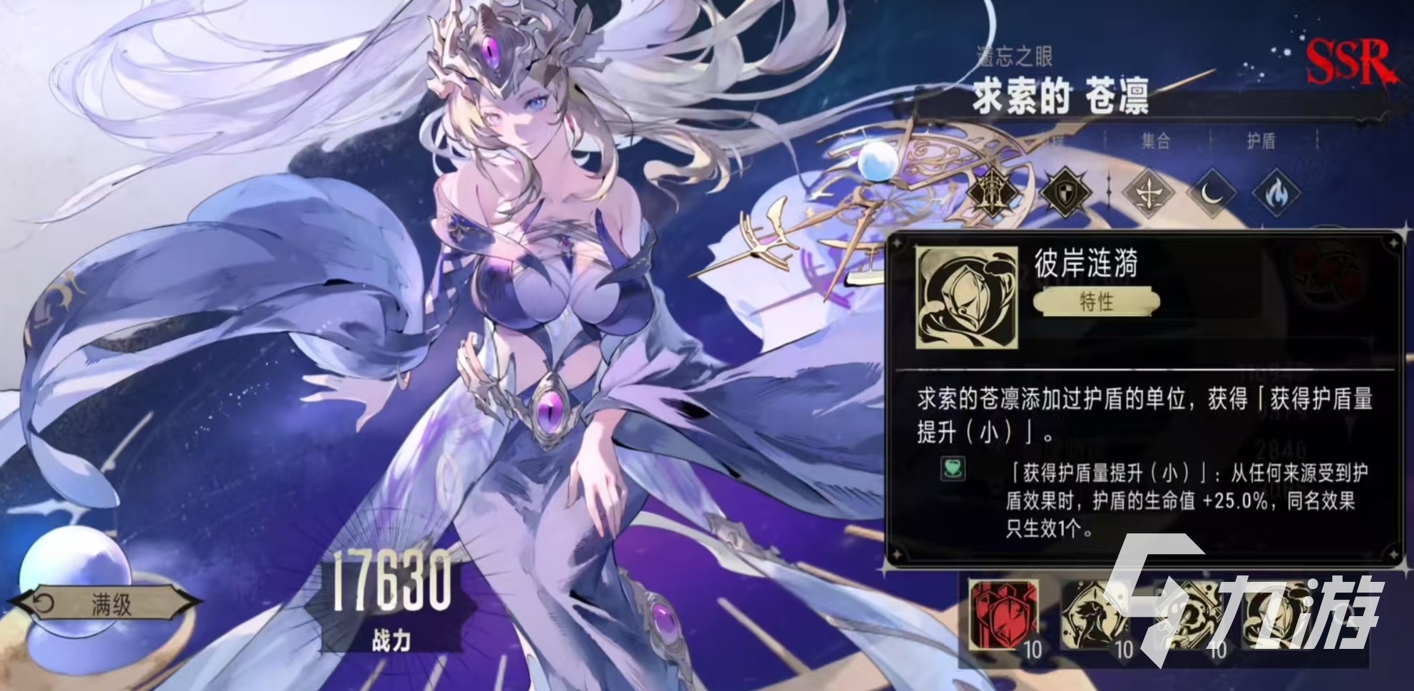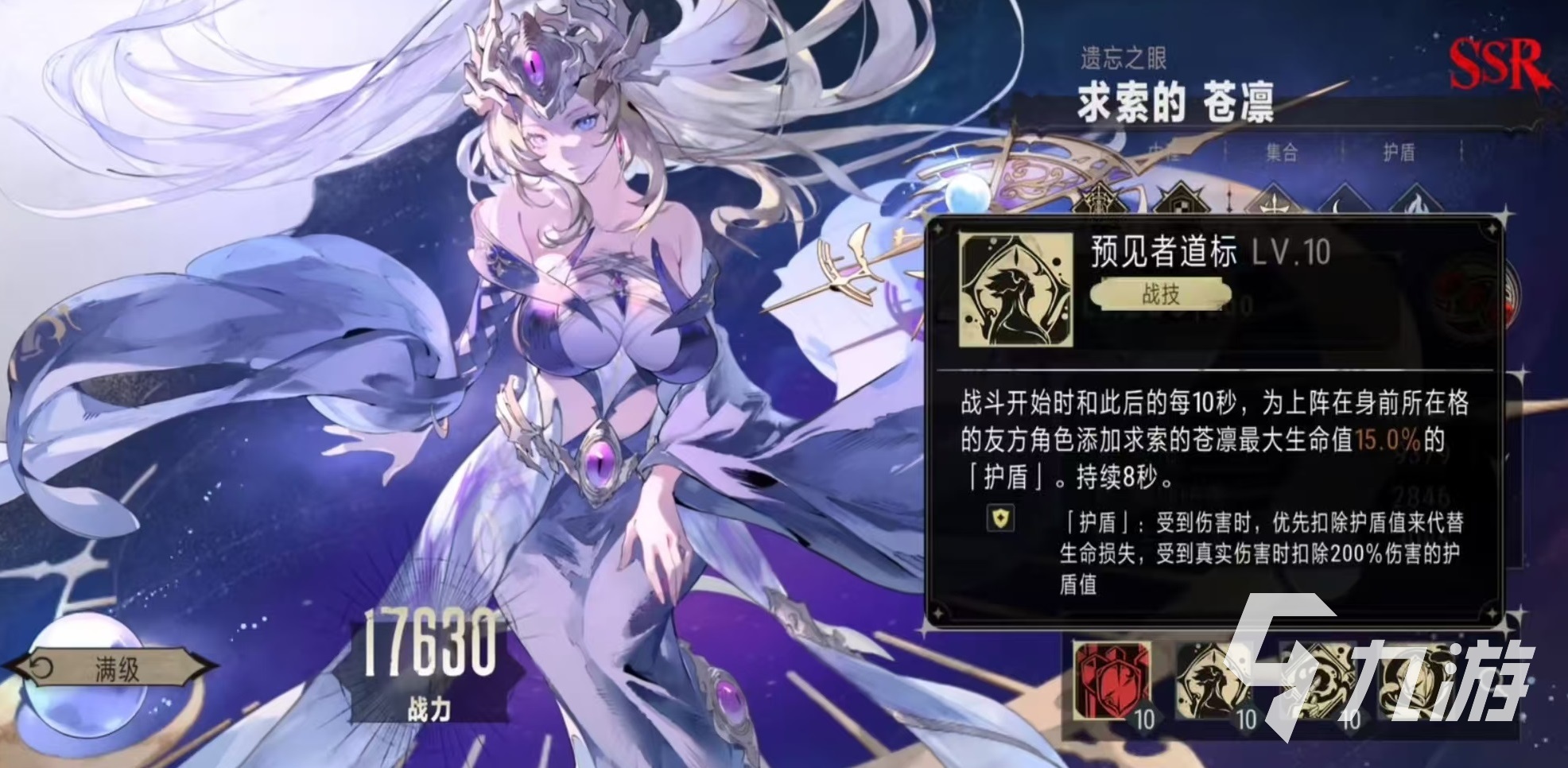戰(zhàn)技在戰(zhàn)斗開始和此后的每10秒鐘都會釋放,為在身前的友方角色添加護盾,持續(xù)8秒鐘。當此技能達到滿級時,會按照求索的蒼凜15%的最大生命值來生成護盾,這樣大家在陣容搭配的時候就要額外注意,要將需要重點保護的角色放到求索的蒼凜身前所在的格,這樣利用生成的護盾,可以提供很好的生存輔助?;竟艨梢詫χ髂繕嗽斐煞ㄐg(shù)傷害,自身的特性是添加過護盾的單位,都可以獲得護盾量提升效果。只要在此效果的影響下,后續(xù)獲得的護盾,都會有額外的生命值加成。