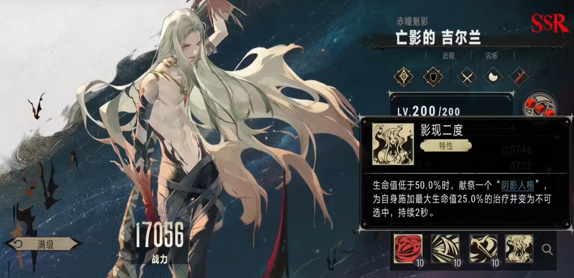 奧義技能可以對(duì)扇形范圍內(nèi)的敵方單位造成高額物理傷害,并對(duì)輸出目標(biāo)中,生命值低于15%的非首領(lǐng)單位造成更高的輸出。接下來每擁有一個(gè)陰影人格,就可以使觸發(fā)額外傷害的生命值百分比閾值提升5%。此技能成功擊殺目標(biāo)后,召喚出一個(gè)陰影人格,陰影人格是屬于召喚物類型,最多存在兩個(gè),會(huì)對(duì)主目標(biāo)進(jìn)行基本攻擊。通過技能效果可以看出,這個(gè)角色的單體爆發(fā)能力很強(qiáng),可以迅速接近并且消滅敵方后排的核心輸出點(diǎn)。
