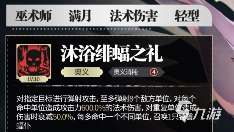 她的大招叫做沐浴緋蝠之禮,用了后可對(duì)主目標(biāo)進(jìn)行彈射攻擊,最多彈射?4~8個(gè)?敵方單位,每個(gè)目標(biāo)受到?300%~600%攻擊力?的法術(shù)傷害。每命中?1個(gè)不同單位,召喚?1只饕餮蝠仆(血源爆發(fā)-超解可召喚2只),不過(guò)命中同一目標(biāo)時(shí),傷害衰減50%。