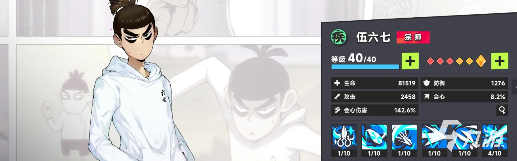 在角色的選擇方面,大家可能都更想選擇自己動(dòng)漫中喜歡的角色。不過(guò)小編這里推薦大家在新手期間可以使用伍六七來(lái)熟悉操作,因?yàn)槲榱卟粌H在動(dòng)漫中是主角,在游戲中同樣非常強(qiáng)力。其各項(xiàng)屬性都比較均衡,同時(shí)操作的難度比較低,對(duì)于新手玩家來(lái)說(shuō)比較好上手。等我們稍微熟悉了游戲的操作以及一些機(jī)制后,我們便可以開(kāi)始選擇我們自己喜歡的角色來(lái)戰(zhàn)斗了。除了戰(zhàn)斗外,玩家還可以在伍六七暗影交鋒體驗(yàn)到經(jīng)營(yíng)的快感,玩家可以經(jīng)營(yíng)起自己的發(fā)廊和牛雜店,經(jīng)營(yíng)的同時(shí)為我們提供一定的物資。