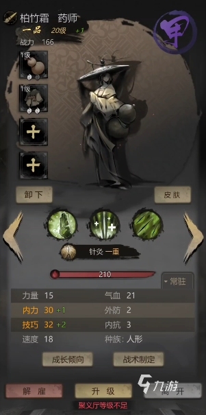 藥師屬于是游戲中比較前期的職業(yè),玩家在編輯隊伍的時候能夠勾選藥師職業(yè)的話,能讓隊伍增加續(xù)航能力,能讓玩家用同一個陣容能盡可能的多搜集幾個線索。在藥師職業(yè)的技能上,一技能【摧心掌】為輸出技能,不過傷害數(shù)值上只有小幅度的加成,二技能【針灸術(shù)】為治療技能,能為隊伍成為起到治療的效果,三技能【九陽針】是帶有中毒效果的技能,不過每層中毒效果能消耗掉的血量有限。從這些技能中也能看出,藥師在后續(xù)的轉(zhuǎn)職中可以轉(zhuǎn)職為毒師職業(yè),轉(zhuǎn)換為這個職業(yè)之后,在技能上也能有多關(guān)于毒傷效果的技能。