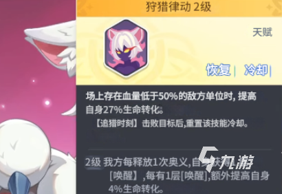 當(dāng)戰(zhàn)場(chǎng)中存在生命值低于一半的單位時(shí),貓女會(huì)觸發(fā)一項(xiàng)特殊能力,吸血效果將得到顯著提升。如果貓女在施展奧義技能時(shí)成功擊殺目標(biāo),該技能的冷卻時(shí)間將會(huì)立即重置。當(dāng)貓女達(dá)到六星等級(jí)時(shí),會(huì)解鎖第二層天賦效果,每次釋放奧義技能,都會(huì)為其疊加一層喚醒狀態(tài),每層喚醒狀態(tài)能額外賦予貓女4%的吸血能力。在后續(xù)的天賦中,貓女還能獲得攻擊力的提升,并且在觸發(fā)元素反應(yīng)時(shí),其攻擊力會(huì)進(jìn)一步增強(qiáng)。此外,當(dāng)貓女使用奧義技能擊殺目標(biāo)后,還會(huì)額外獲得兩個(gè)奧義點(diǎn)。