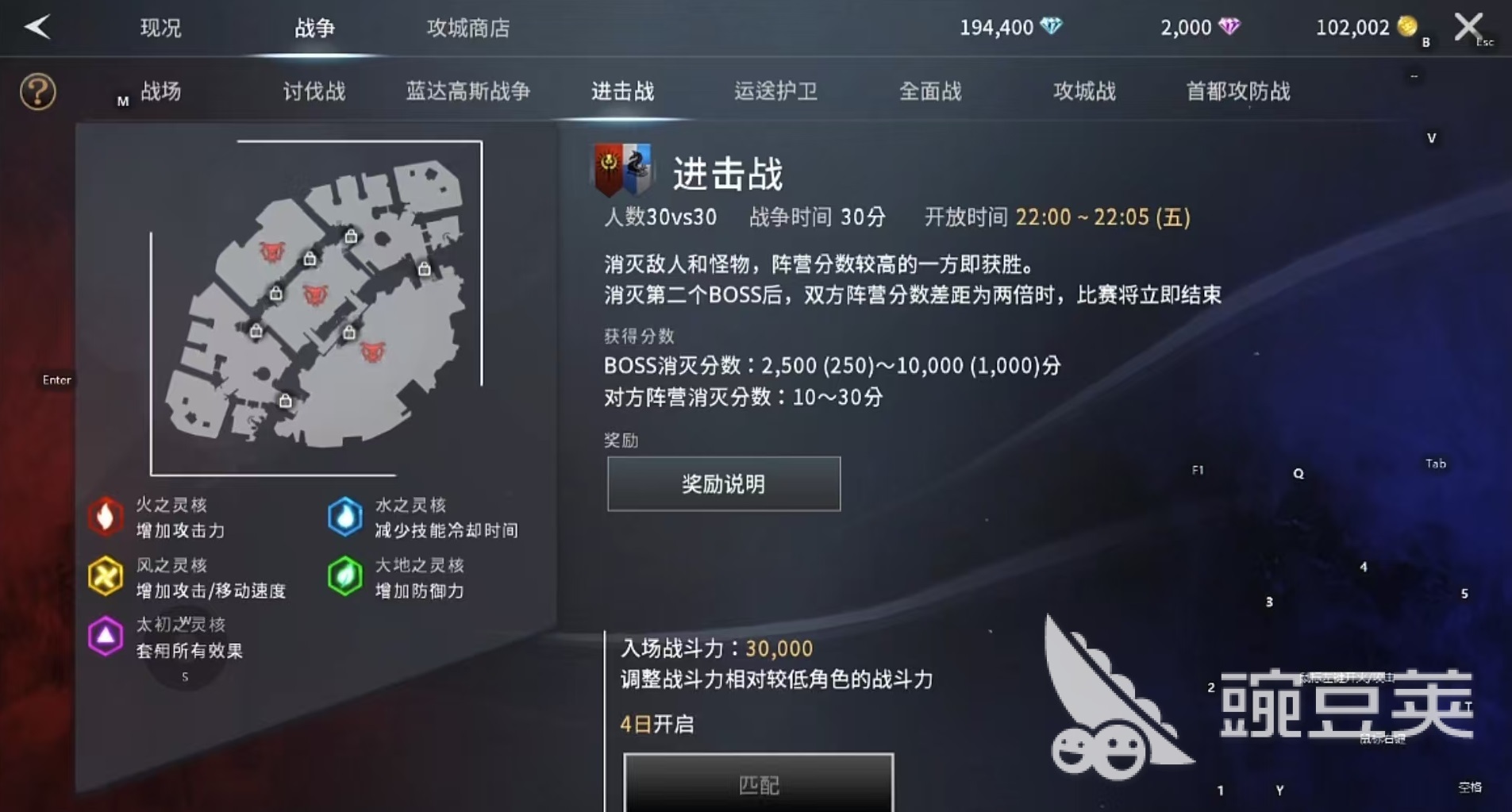 在具體機制方面,每周六10:00~10:05開啟進入活動,持續(xù)30分鐘。60名玩家被分為兩個陣營,進行30對30的限時陣營戰(zhàn)斗較量。獲勝的條件是雙方在指定戰(zhàn)場中,消滅敵人和怪物,分數(shù)較高的一方就能獲勝,如果在消滅第2個boss之后,雙方陣營分數(shù)差距達到兩倍以上,那么比賽將立即結(jié)束,分數(shù)多的一方直接獲勝。該玩法的特點是場上的人數(shù)非常多,雙方的實力差距固然會影響勝負,但是地圖中的動態(tài)增益機制,讓實力強的玩家陣營并不一定能笑到最后,弱勢的一方如果能夠合理利用增益,也可以實現(xiàn)瞬間翻盤。