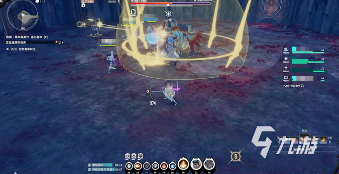 小怪里優(yōu)先考慮殺森哥布林,不然對方會一直回血并且給自己加盾,打起來會比較麻煩,因為戰(zhàn)斗會持續(xù)拉長,所以需要速戰(zhàn)速決。其次是火哥布林,它的aoe傷害是比較高的,需要控制仇恨值,快速集火進行消滅。剩下就是劍盾哥布林了,在boss血量降低到20%的時候會觸發(fā)對應(yīng)的機制,擊殺之后會掉落部分護盾道具,不過只有指定角色可以拾取。