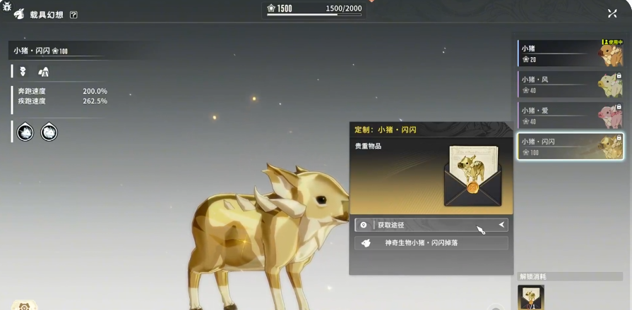 在這里借助元素水晶,可觸發(fā)相關(guān)的坐騎挑戰(zhàn)任務(wù),完成試煉能獲得坐騎碎片,多進(jìn)行幾次,就能通過碎片合成完整的坐騎了。另外就是前文提到的贈(zèng)送的坐騎,這個(gè)平平無奇的小豬,還有其他三種形態(tài)可以解鎖,通過完成對(duì)應(yīng)的解鎖任務(wù),就能獲得新的小豬,新形態(tài)的小豬速度比較原先的要快不少。