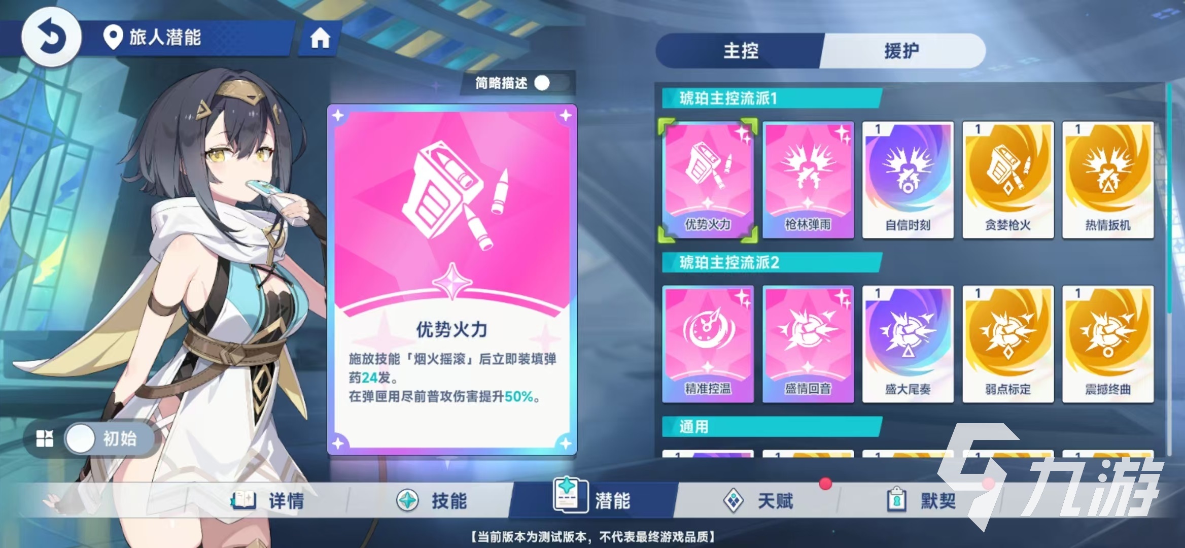這里小編以琥珀為例,在主控的時候,潛能包括優(yōu)勢火力槍林彈雨自信時刻等,而在援護的時候就變成了追獵舞步和散落舞步等。其他每個角色都是如此。不過主控角色和援助角色,在潛能的選擇方面原則是不用的,主控角色往往需要選擇增加傷害方面的選項,而援助角色更需要選擇輔助相關(guān)的潛能,例如冷卻縮減、減傷等。至于潛能的獲得,主要通過星卡探索,玩家每成功通關(guān)一個小關(guān)卡,就可以獲得一次選擇的機會。從三種潛能當中選擇一項,這時就要根據(jù)角色的定位、戰(zhàn)斗策略和自身的戰(zhàn)斗習(xí)慣從中作出選擇,每一項都可以增加角色的操作手感或者是技能效果。