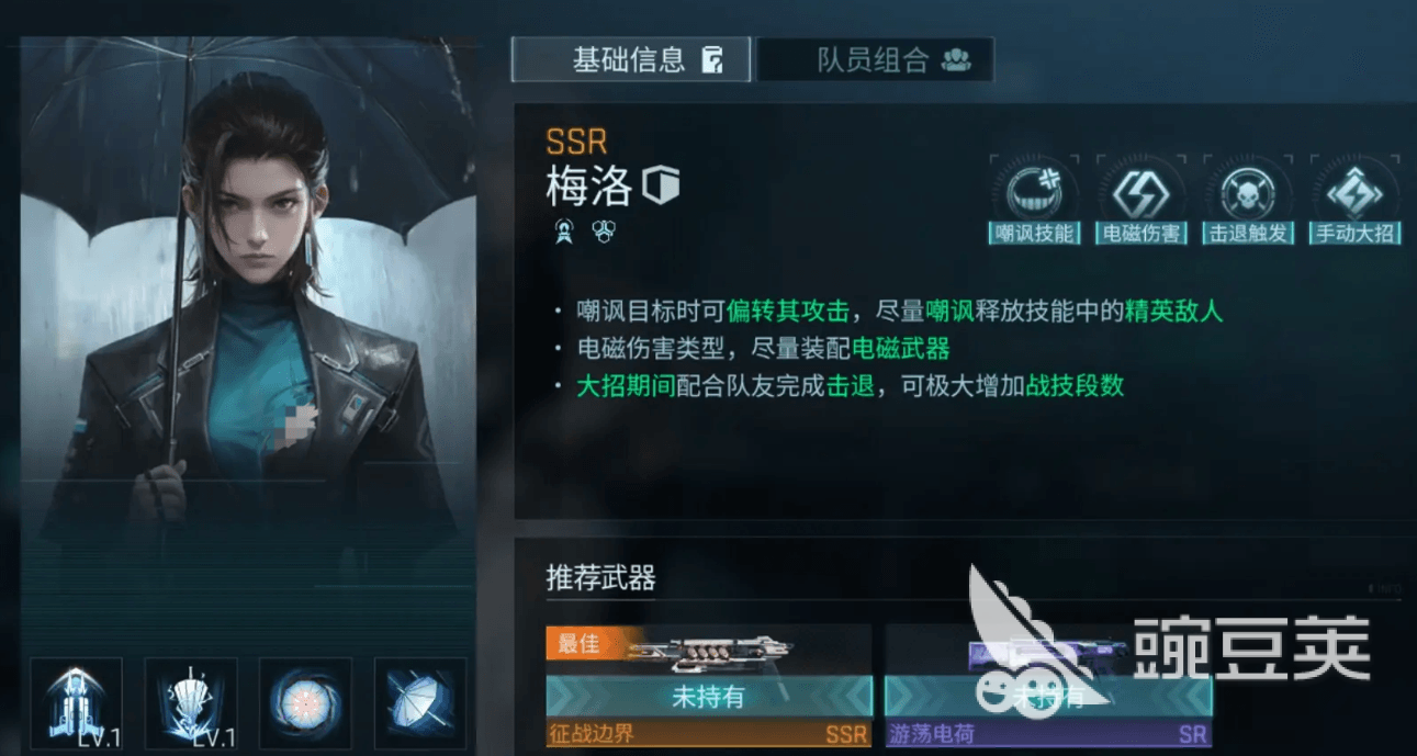 梅洛是有著高防御的重盾定位,可以嘲諷敵人,讓他們攻擊自己從而達到保護隊友的作用,由于嘲諷目標的時候可以偏轉其攻擊,所以可盡量去嘲諷精英敵人,她的大招可以配合隊友完成擊退。