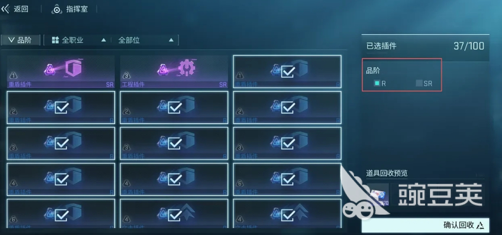 另外就是插件的獲取方式,大家可以通過黑盾征募和限時征募的方式來獲得。在征募時我們要先獲得隊(duì)員的本體,這樣才能獲得這個隊(duì)員的專屬插件。其次就是插件的回收,如果大家手上有多余的插件可以進(jìn)行回收,回收按鈕就在隊(duì)員的插件裝備頁面,點(diǎn)擊右側(cè)的品階就可以實(shí)現(xiàn)批量回收,r級的插件回收之后可以獲得信賴之證,sr級插件回收之后則可以獲得信賴之光和信賴之證。