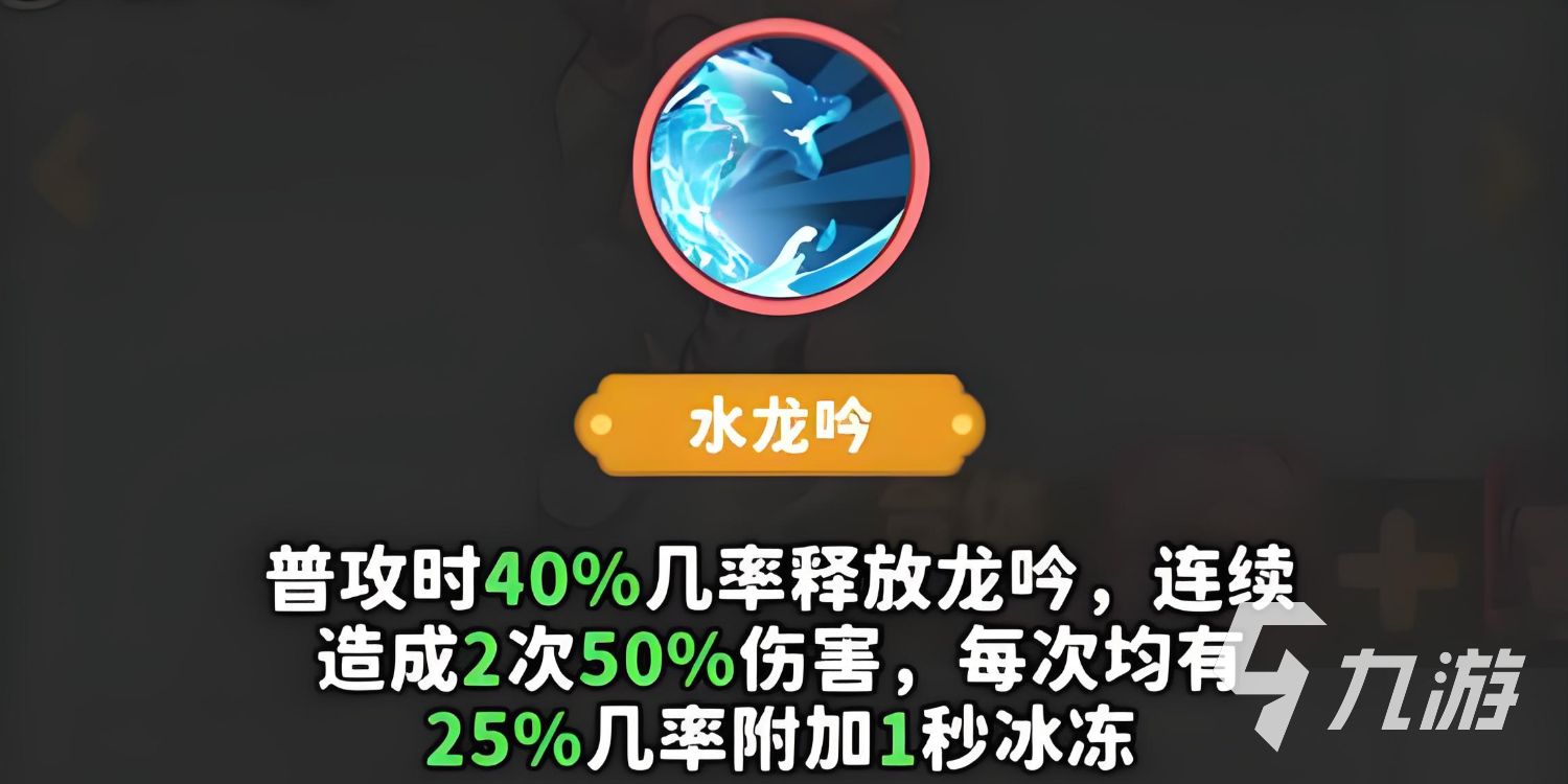 魔寵降臨現(xiàn)在水系的紅色品質(zhì)寵物暫時(shí)只有一個(gè),那就是滄溟龍神,所以我們一起看看滄溟龍神都有哪些技能。滄溟龍神的一技能是普攻的時(shí)候,有概率發(fā)動(dòng)兩段龍吟造成一定量傷害,同時(shí)每段龍吟還有25%的概率造成冰凍效果。這是一個(gè)既有輸出,又帶有控制的技能,而且技能的發(fā)動(dòng)率比較高,在BOSS戰(zhàn)中如果可以打斷BOSS的一些關(guān)鍵技能,那么對(duì)于隊(duì)伍可以說非常有幫助。
